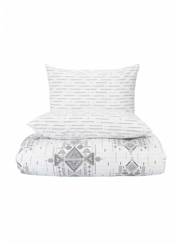 Das Bettwäsche-Set Andy ist mit ihrem Tribal-Muster ein Blickfang für Ihr Schlafzimmer. Die in der Türkei hergestellte edle Baumwolle in 57 Fadenzahl/cm2 mit Ranforce-Qualität sorgt für einen weichen Griff und ist pflegeleicht sowie widerstandsfähig. Die Feinheit der Fasern macht diese Garnitur hautfreundlich und komfortabel. Kissenbezug und Bettbezug sind mit einem Knopfverschluss ausgestattet. – Tolles Bettwäsche-Set von Bella Maison – Aus reiner Baumwolle mit einer Fadenzahl von 57 pro cm² – Das Renforcé-Gewebe steht für eine glatte und weiche Oberfläc – Dank Wendemöglichkeit ein echter Hingucker – Bestehend aus einem Bett- sowie einem Kissenbezug