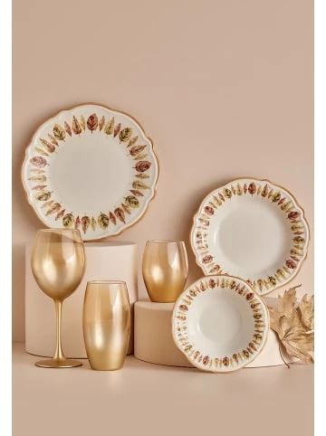 Bella Maison bietet das Steingut-Geschirrset “Fall” in trendigen Farbtönen mit speziell entworfenen Mustern an. Das Set ist mit einem eleganten Relief im trendigen “handmade”-Look gestaltet. Das Geschirr ist besonders langlebig und spülmaschinen-, mikrowellen- und ofenfest, so dass es absolut in Ihren Alltag passt. – Stilvolles Teller-Set von Bella Maison – Je 6 flache Teller, Suppenteller und Desserschüsseln – Besonders langlebig für den täglichen Gebrauch – Glänzende Oberflächenstruktur mit handmade-Design – Spülmaschinen-, mikrowellen- und ofenfest